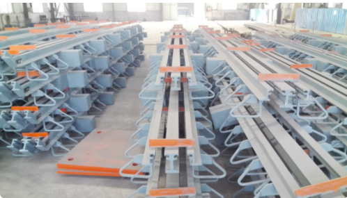 伸缩装置因受运输长度限制,可分段制造,现场拼接。存放在工地的伸缩装置应平行放置,不得交叉堆放,以防变形。